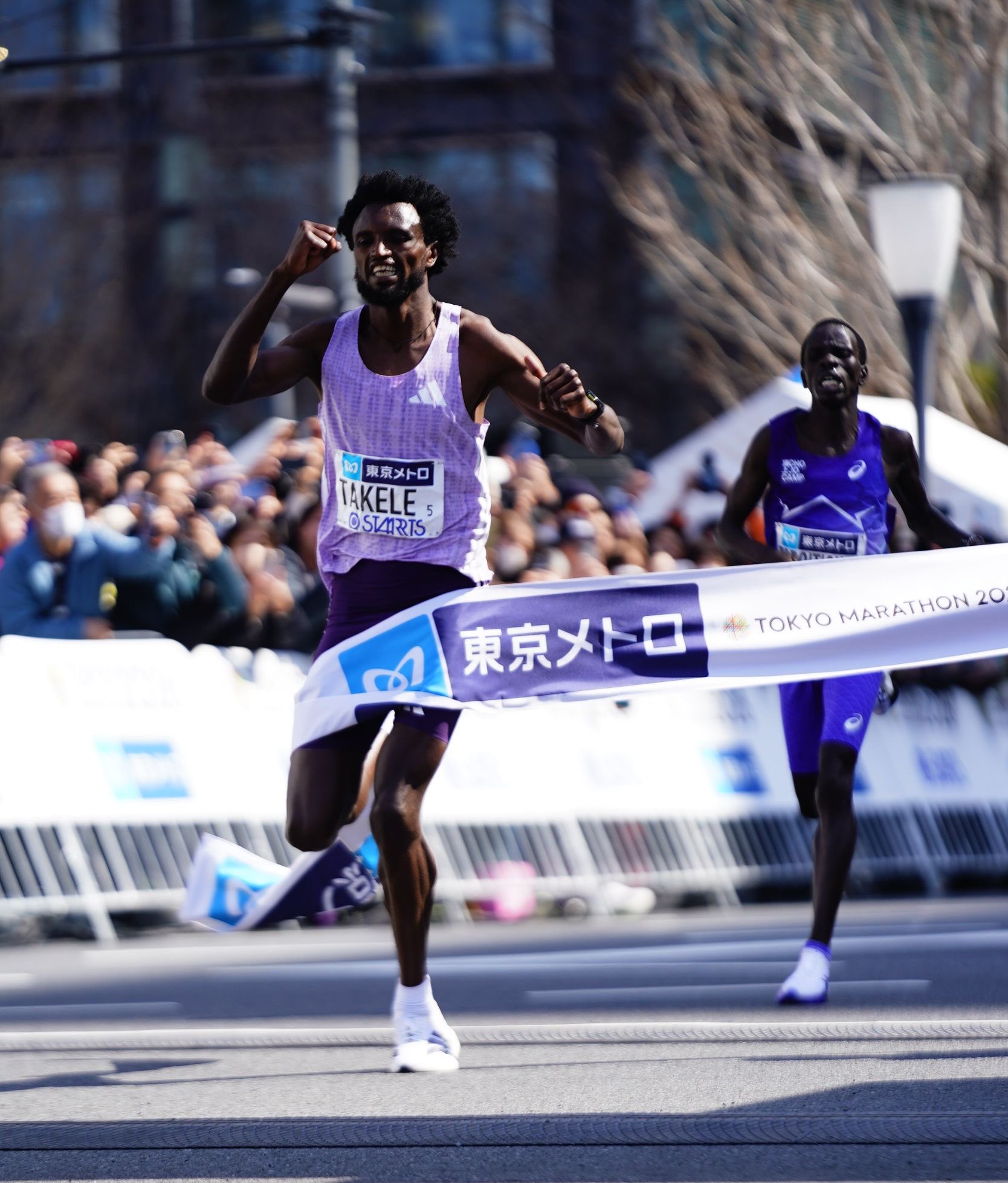 Hasta los últimos 1200 metros de la carrera, Takele se encontraba entre los cuatro corredores que se dirigían hacia la meta. Sin embargo, luego aceleró el ritmo en una racha hacia la meta, superando por poco a Toroitich. Takele no igualó ni superó su tiempo de 2:03:23 del año pasado, su mejor marca personal, pero se convirtió en el segundo corredor en ganar dos Maratones de Tokio consecutivos.
