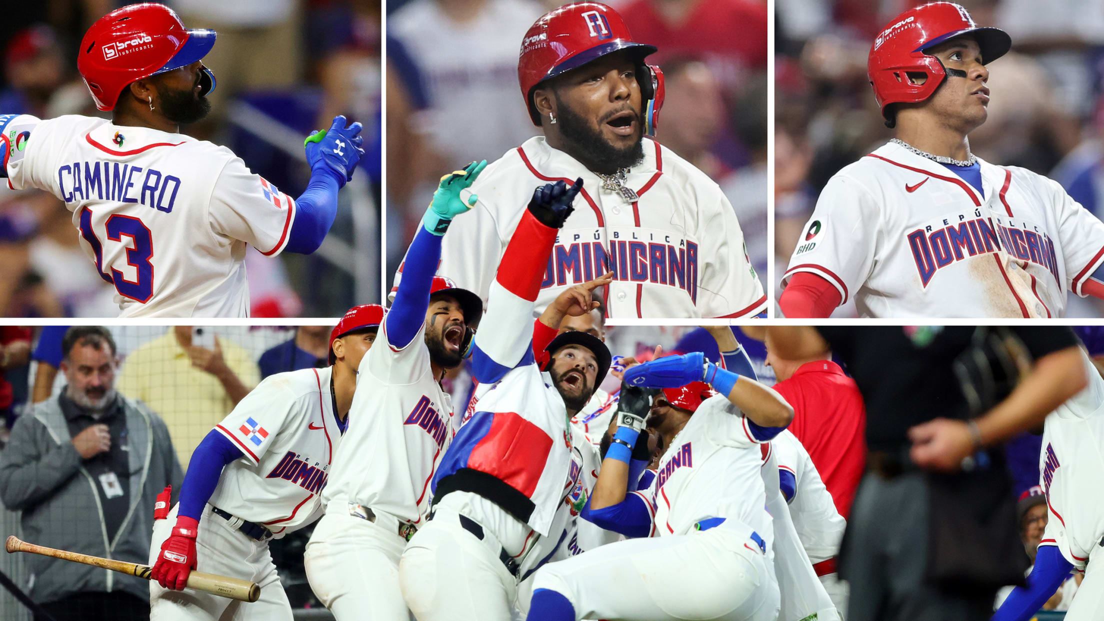 Caminero dio su segundo cuadrangular en la misma cantidad de partidos, llegando un turno después de recibir un bolazo. Le dio a un pitcheo del derecho Wendell Floranus con la cuenta 3-1, que Statcast calculó con una distancia de 424 pies para despegar a los dominicanos por 7-1. El tablazo tuvo una velocidad de salida de 115.8 mph, que fue el segundo batazo más fuerte en los últimos dos Clásicos Mundiales (desde que se comenzaron a calcular los pitcheos) por debajo del cañonazo de 116.8 mph de su compañero Oneil Cruz el viernes.
